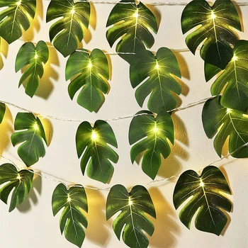 20LED Monstera Leaves LED String Lights Artificial Leaf Light Birthday Hanging Vine Party Beach Theme Home Garden Decorations