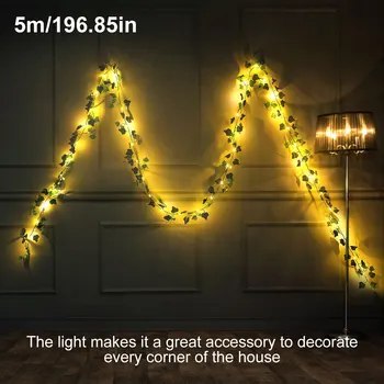 5m 50LED/10m 100LED Green Leaf String Lights Artificial Vine Fairy Lights Battery Powered Christmas Garland Light For Home Decor