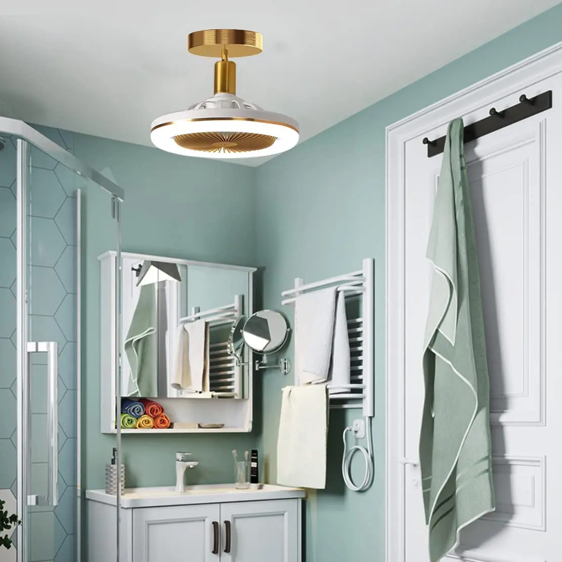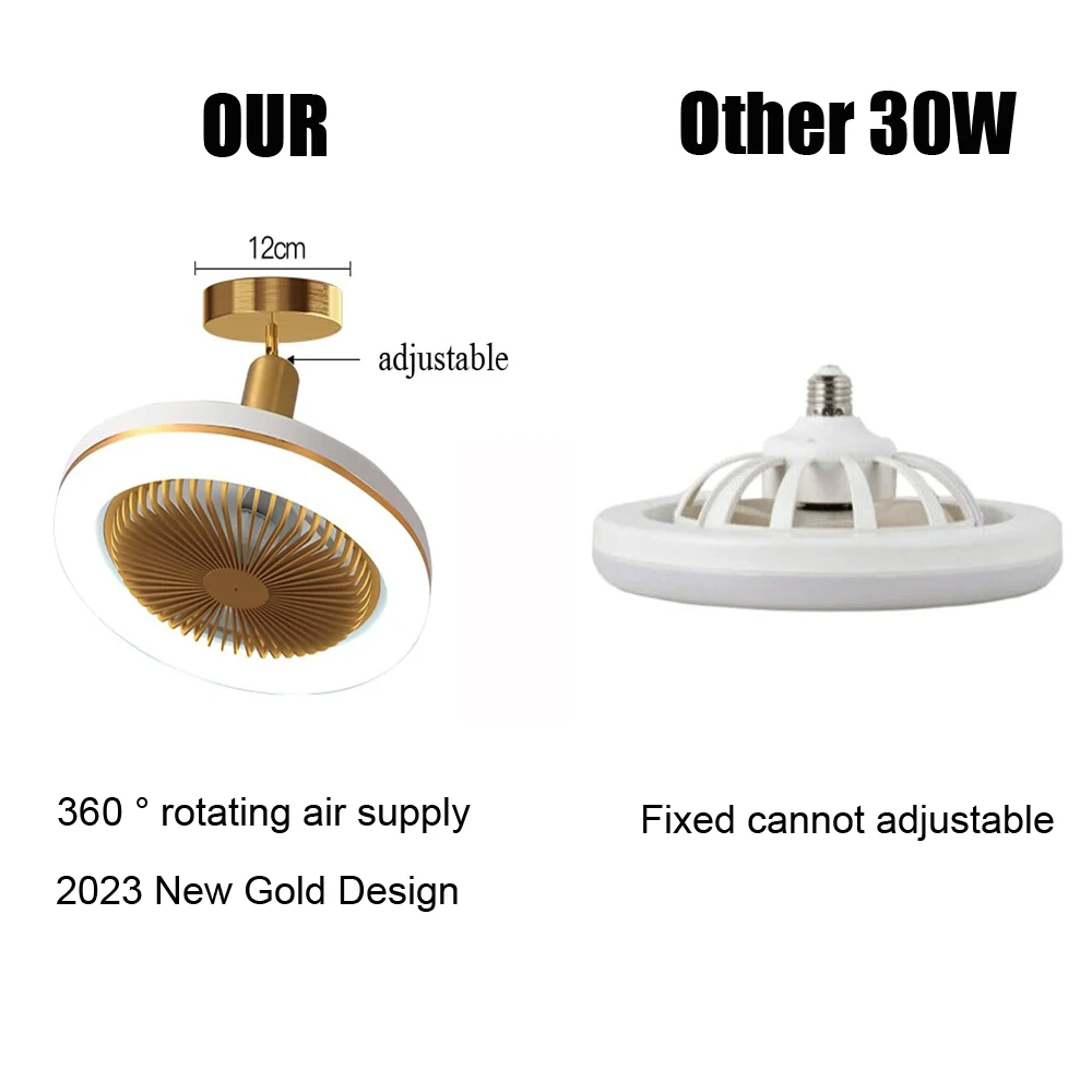 Introducing the Ceiling Fan E27 with LED Light and 3 Colors Remote Control, a versatile and adjustable lighting solution that also functions as a fan. This compact fan light is designed to fit in small rooms or corridors with its dimensions of 26 * 12 * 12 centimeters.