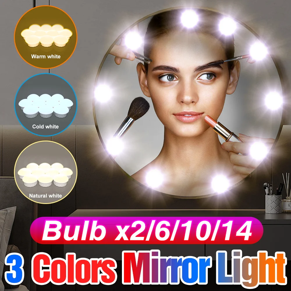 for Makeup and Dressing Table, USB-Powered Hollywood Style Bulbs for Cosmetics, Bathroom Wall Mirror Lamp