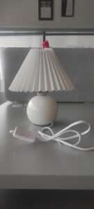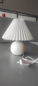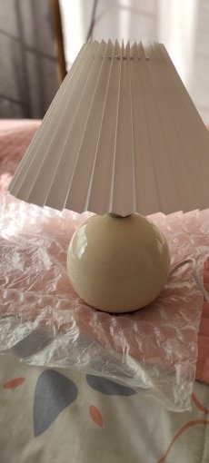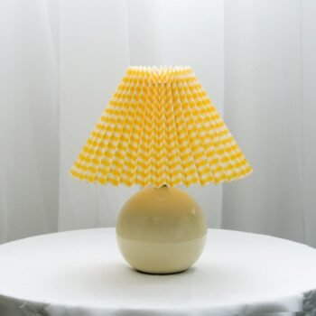 Introducing the Vintage Pleated Table Lamp, a perfect decorative night light for your bedroom. This charming lamp features a pleated design, adding a touch of vintage elegance to your space. The LED tricolored bulb provides adjustable lighting options to suit your mood and preferences. With its ceramic base, it adds a classic and timeless touch to your bedroom decor. Illuminate your space with style and create a cozy ambiance with the Vintage Pleated Table Lamp.