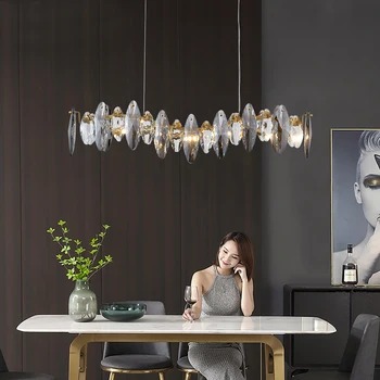 YOULAIKE modern crystal chandelier for dining room large wave design cristal lamp luxury kitchen island hanging light fixture